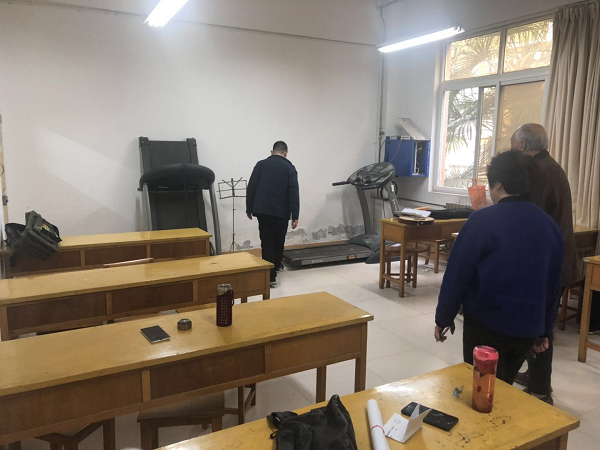 为落实陕教安办[2019年8号]《关于进一步加强学校安全隐患排查整改的紧急通知》文件精神,4月2日,离退休工作处副处长张华、办公室主任马超、社团中心主任杨祺一行人对南苑、西苑活动室、北苑老干部活动室、老年大学教室进行了安全检查。