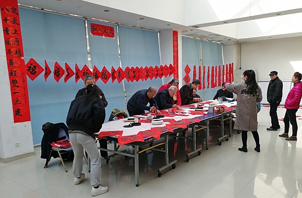 红枫叶艺术团带来的舞蹈节目将大会推向高潮,赢得阵阵掌声。团拜会现场灯火熠熠、暖意融融,老同志们热情交流、互致问候,共同迎接新年的到来。会后,由红枫叶书法协会的老同志们为大家现场撰写、赠送春联,场面热闹红火,一片喜气祥和。(离退休工作处 文/王欢 图/郭友军 审核/侯亚涛)
