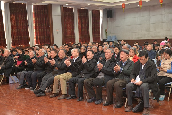 1月11日下午,学校2018年离退休教职工新春团拜会在健翔楼五楼隆重举行。党委书记张炜、校长汪劲松、党委副书记张骏、校长助理兼党委组织部部长杨晓出席大会,学校办公室等部门负责人与300余名离退休教职工欢聚一堂,共迎新春。