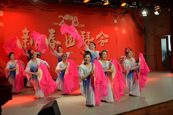 团拜会在舞蹈《欢乐工大人》中正式拉开序幕。大会播放了《2017年红枫叶栏目视频集锦》以及《老有所为先进集体和先进个人风采展示》,视频回顾了一年来上级和学校对离退休工作的关心支持和离退休工作处的重点工作,集中展现了我校离退休教职工老有所为、积极向上的精神风貌。