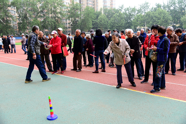 随后进行了趣味运动会,设置有套圈、过三关、保龄球、老虎喂食、投沙包、运乒乓球等趣味项目,老同志们分别选择自己喜爱、擅长的项目参加,本着重在参与的原则,欢乐竞技。围观的老同志们不断地为参赛者们加油助威,场面十分热闹,有的老同志们更是凑在一起相互交流比赛技巧。他们有的坐着轮椅、有的家人陪伴、有的夫妇结伴而来的,全心投入到比赛之中,充分享受着比赛带来的乐趣。
