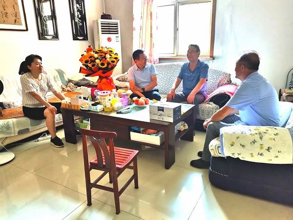 赵洪章处长与他们叙家常、话冷暖。“身体怎么样?食欲如何?平时锻炼吗?……”关切地询问他们身体状况、生活情况。老教师们乐观豁达、幽默风趣,生活自律,注重养生,爱看新闻关心国家大事。赵洪章处长向他们讲解了新型防诈骗知识,并叮嘱他们在日常生活中要提高反诈意识及防骗能力,不轻信、不转账,守护好自己的“钱袋子”,并叮嘱老教师们要注意防暑降温,外出散步防止摔跤,在家要注意用电、用气的安全,有事随时拨打24小时应急热线88495000。