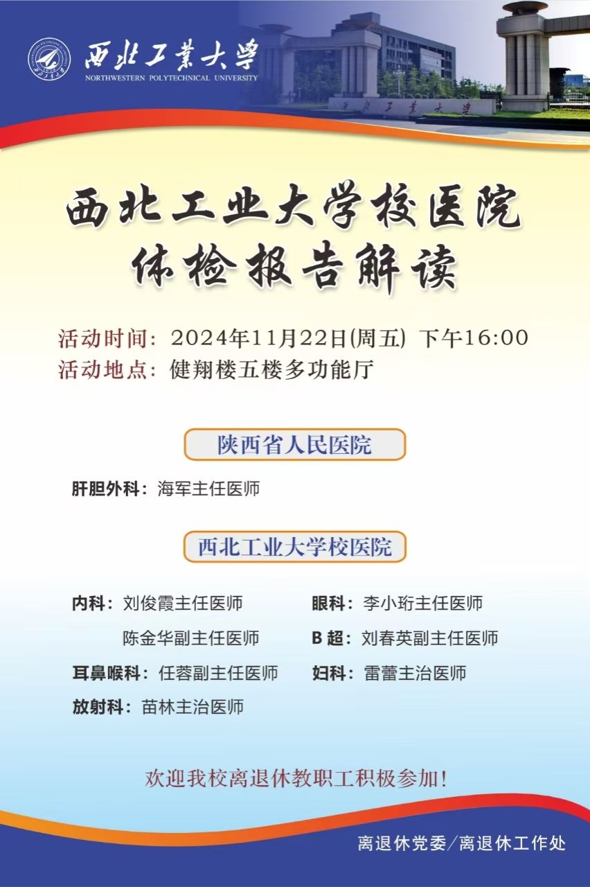 CopyRight © 2021 All Rights Reserved 西北工业大学 离退休工作处 版权所有 地址:西安市友谊西路127号 邮编:710072
