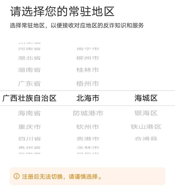 二.选择常驻地区。