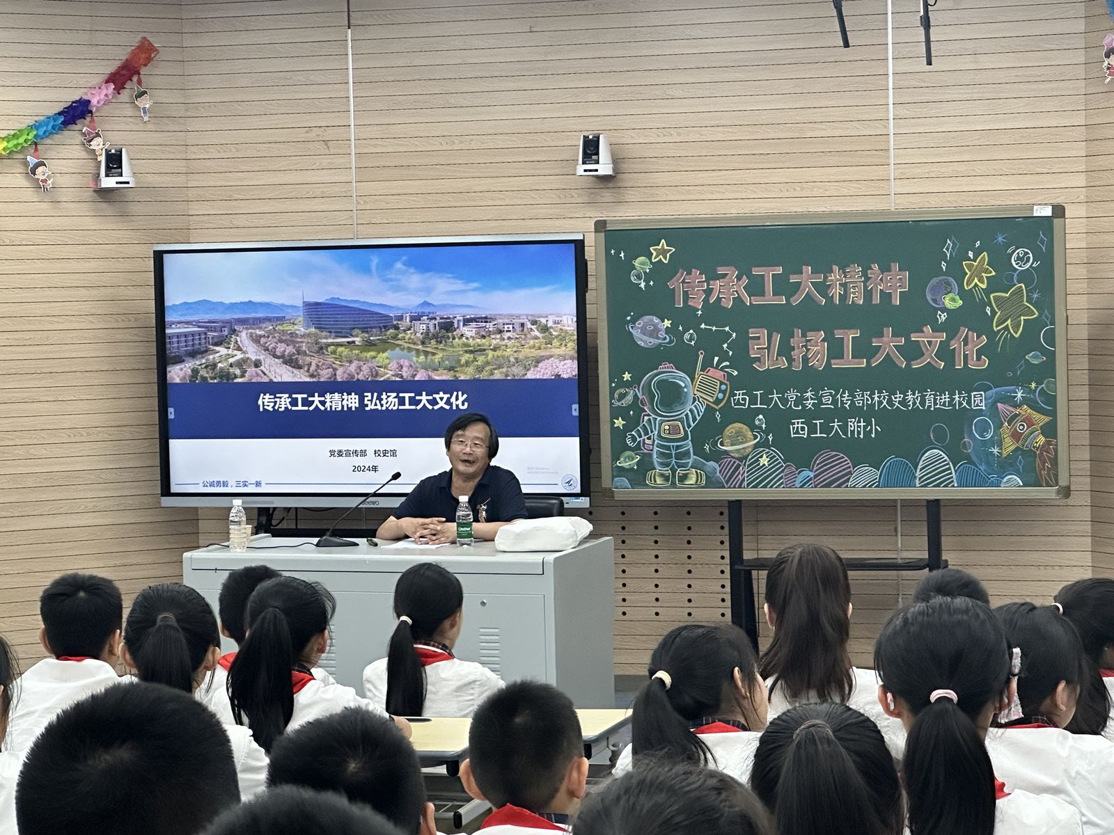 6月12日上午,校党委宣传部、校史馆联合关工委举办以“传承工大精神、弘扬工大文化”为主题的校史教育进校园活动,特邀校关工委“银发宣讲员”、原马克思主义学院副教授高宝营为附小毕业班学生讲授校史课。