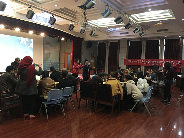 1119日下午,外国语学院、离退休工作处、社区、国际教育学院共同举办的“西工大中外学生文化体验之走进离退休老同志的生活”交流活动在健翔楼五楼多功能厅举办。此次活动吸引了俄罗斯、巴基斯坦等近30多名留学生以及红枫叶书画协会、器乐协会、合唱团、京剧团等10余名老同志热情参与。离退休工作处副处长张春生、社团中心主任杨祺、社区副主任宋强等参加了活动。