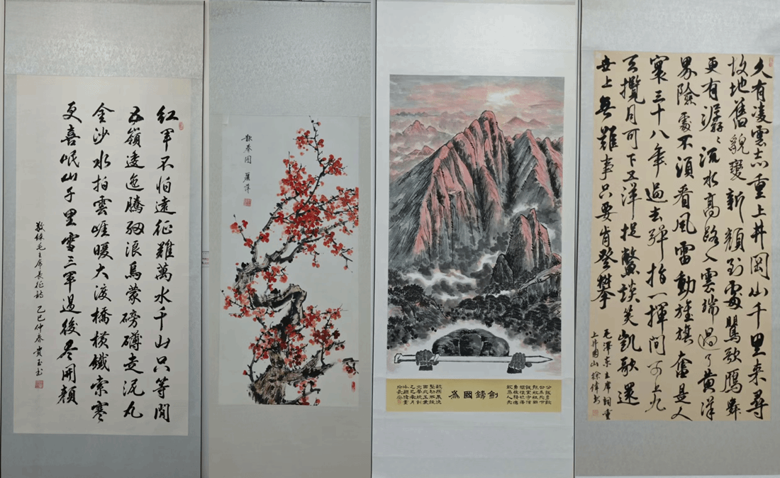 此次参与创作的老同志,以笔墨寄情、以镜头言志,将对历史的铭记与时代的礼赞融入作品之中。其中,徐伟同志的书法作品《水调歌头・重上井冈山》笔力遒劲、气韵生动,以豪迈笔触再现革命圣地的壮阔情怀;何贵玉同志的《七律・长征》书法作品则字字铿锵,将长征的峥嵘岁月与不屈精神凝于笔端;冷国伟同志的绘画作品《为国铸剑》构思精巧,通过细腻笔触展现我校扎根西部隐姓埋名矢志报国的坚定信念;曹丽萍同志的《报春图》色彩明丽、意境悠远,以生机盎然的画面传递希望与奋进力量;宫蒲荣同志的摄影作品《鲲鹏展翅》视角独特,用镜头定格歼20昂扬向上的姿态,彰显新时代砥砺前行的精神风貌。