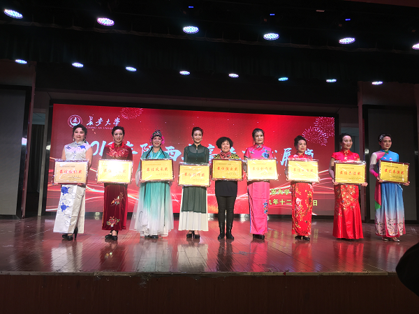 首先,长安大学离退休工作处处长董洁致开幕词,我校红枫叶艺术团时装队队长郭旭虹代表陕西省高校艺术展演组委会致辞。随后西安交通大学、西安电子科技大学、西北大学等12支队伍分别登台展示,有现代摩登的时装、有中国传统的旗袍秀、有经典红歌舞蹈、有韵律动感的现代舞、有气势磅礴的大合唱等精彩表演,形式特色,各有千秋。我校红枫叶艺术团时装队的时装舞蹈《永恒的友谊》,将新疆舞元素与时装表演完美融合、《梨花颂》将中国传统京剧与旗袍秀有机结合,自然精致的妆容、略显慵懒的发髻,端庄典雅的台步,展现了时装带给人们的静谧之美,将整场演出推向了新高潮,被评为“最佳创作奖”。