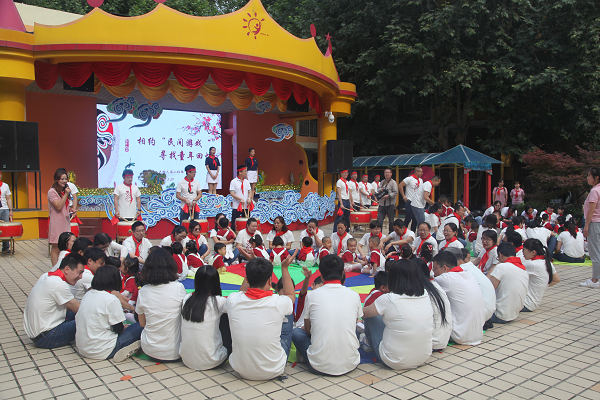 8时45分,庆祝活动正式开始。在主持人的带领下,按照小朋友们的年龄特点,热情高涨地做着“丢手绢”、“马兰开花”“拍手”等亲子互动游戏,把红枫叶艺术团舞蹈队队员也带回到了童年时代。
