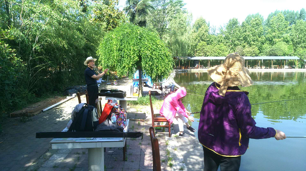 参加活动的会员中,既有经验丰富、动作娴熟的钓鱼老手,也有刚刚接触钓鱼的新人。一到鱼塘边,大家都兴致勃勃,立即拉开阵势,边给鱼“做饭”,边交流经验,接着投饵、装饵、下钩,忙得不亦乐乎。随着鱼竿的舞动,鱼儿跃出水面,在艳阳的初夏里,别有一番乐趣。返程途中,会员们还不断交流着诸如如何绑钩、如何调漂、整个钓组如何匹配、去天然钓场如何选位等常见垂钓问题。