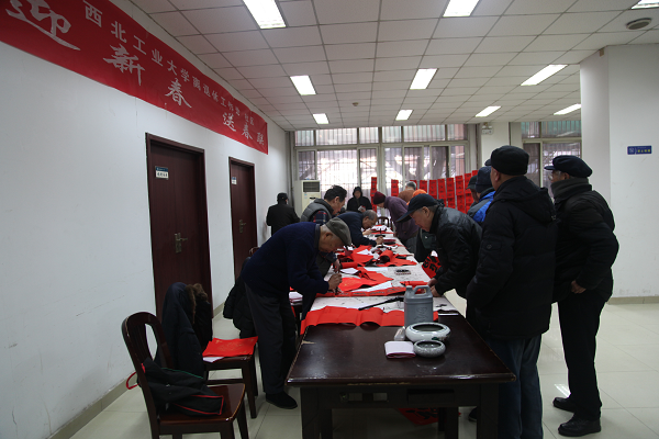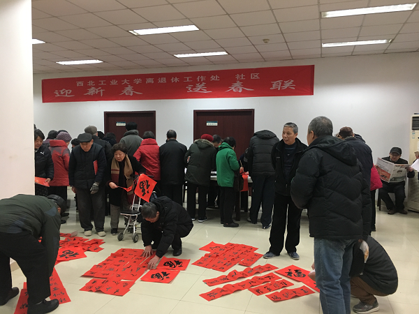无联不成春,有联春更浓。漫天飞舞的雪花,更是增添了“年“的气息,为了弘扬传统文化魅力,迎接新年的到来。1月11日,由离退休工作处和西工大社区在健翔楼共同举办“迎新春、送春联”公益活动在健翔楼一楼如期举行,红枫叶书画协会的十多位老书法家担纲书写为校内师生们题写春联,送去祝福和吉祥。