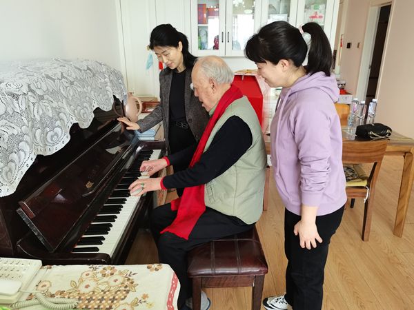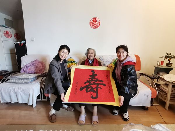 3月15日,离退休工作处副处长马俊、退休科科长胡婷及工作人员带着学校的关怀,带着祝寿礼物上门分别为李长林、崔桃瑞两位老师祝贺九十岁寿辰。