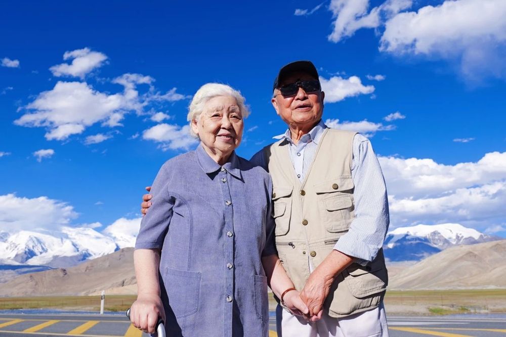 每当我们问起他都去过哪些地方,他告诉我们走遍全国是他的梦想。2023年王廷瑞老师萌生了奔赴南疆喀什的想法,即使周围人都对他进行劝阻,但王廷瑞老师仍然坚持,他说:“退休前,我们忙于工作,从未好好看看这曾经我们拼命守护的山河;退休后,终于有了时间去周游,中国东南中北部都去过了,唯独最西边没去过,我想去看一看!”于是2023年暑假,两位满头银发的九十岁老人,站在红旗拉甫和祖国边疆的蓝天白云留下了最美的记忆!