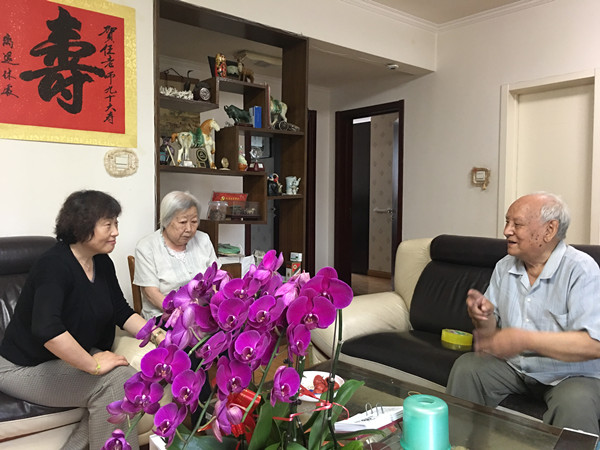 6月20日上午,离退休工作处副处长张华、老干科科长余波及工作人员一行带着学校的关怀,带着祝寿礼物上门为任思聪老师祝贺九十岁寿辰。