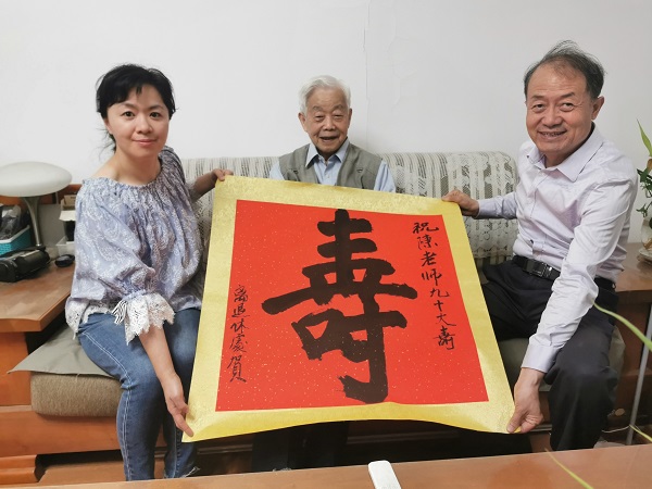 5月18、19日,离退休工作处副处长王华、退休科科长胡婷及工作人员带着学校的关怀,带着祝寿礼物上门分别为陈鑫根、李永锡两位老师祝贺九十岁寿辰。