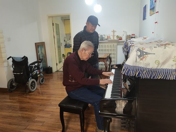 邹老师虽然90岁高寿,但精神矍铄、面色红润、思维清晰。生活中热爱音乐,即兴之余为我们弹奏钢琴曲《波兰圆舞曲》、《草原之夜》、《思故乡》、《送别》、《万水千山总是情》等经典曲目。琴音悠扬,优美动听,让在场的人无不陶醉,大家纷纷称赞邹老琴技娴熟而灵动,邹老听到我们对他的夸赞,脸上露出开心的笑容。