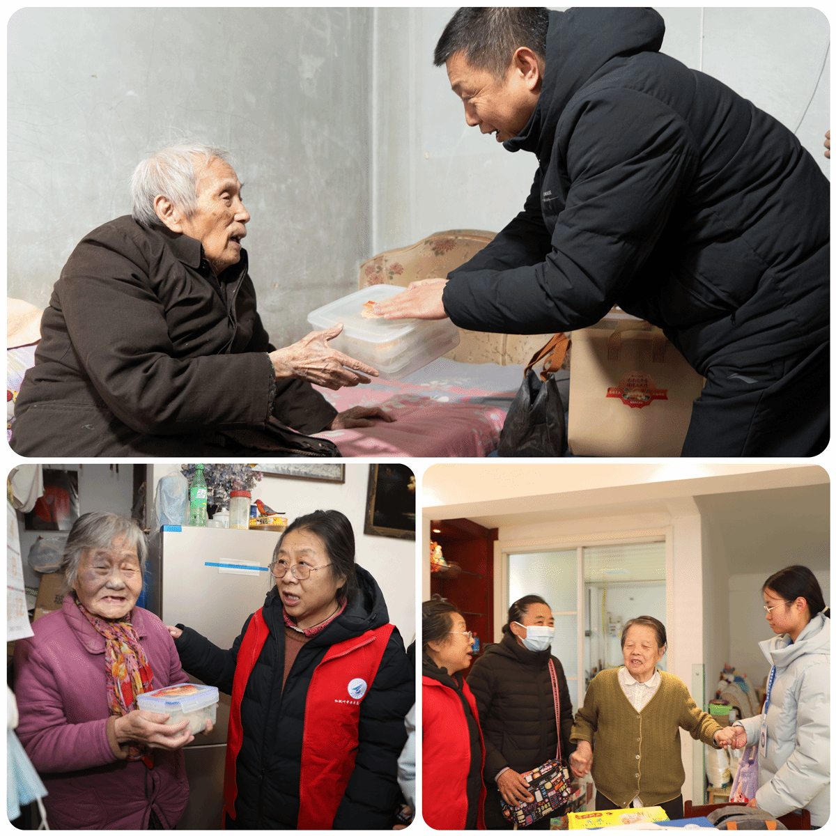 冬日挡不住关怀的脚步,严寒冷却不了送温暖的心。“红枫叶”“枫小宝”老青两支志愿服务队和离退休工作处人员分7组为我校独居老人们送去这份特别的冬日祝福,传递学校大家庭的温暖与关怀!