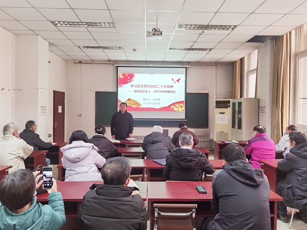 12月9日下午,离退休党委邀请学校党的二十大精神理论宣讲团成员、马克思主义学院温海霞作《增进民生福祉,提高人民生活品质》宣讲,离退休党委书记赵洪章作题为《学习宣传贯彻党的二十大精神——坚持生命至上,共同守护健康校园》的党课。离退休党委班子成员、离退休党员骨干以及全体教职工50余人,通过线下与线上相结合的方式参加了学习。会议由离退休党委副书记张琨主持。