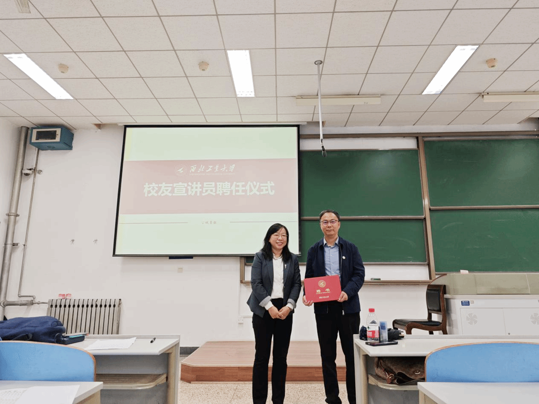 讲座后,张琨代表学校关工委为尹韶平总师颁发“校友宣讲员”聘任证书,聘任尹总师为我校青年师生开展思想政治教育宣讲工作。