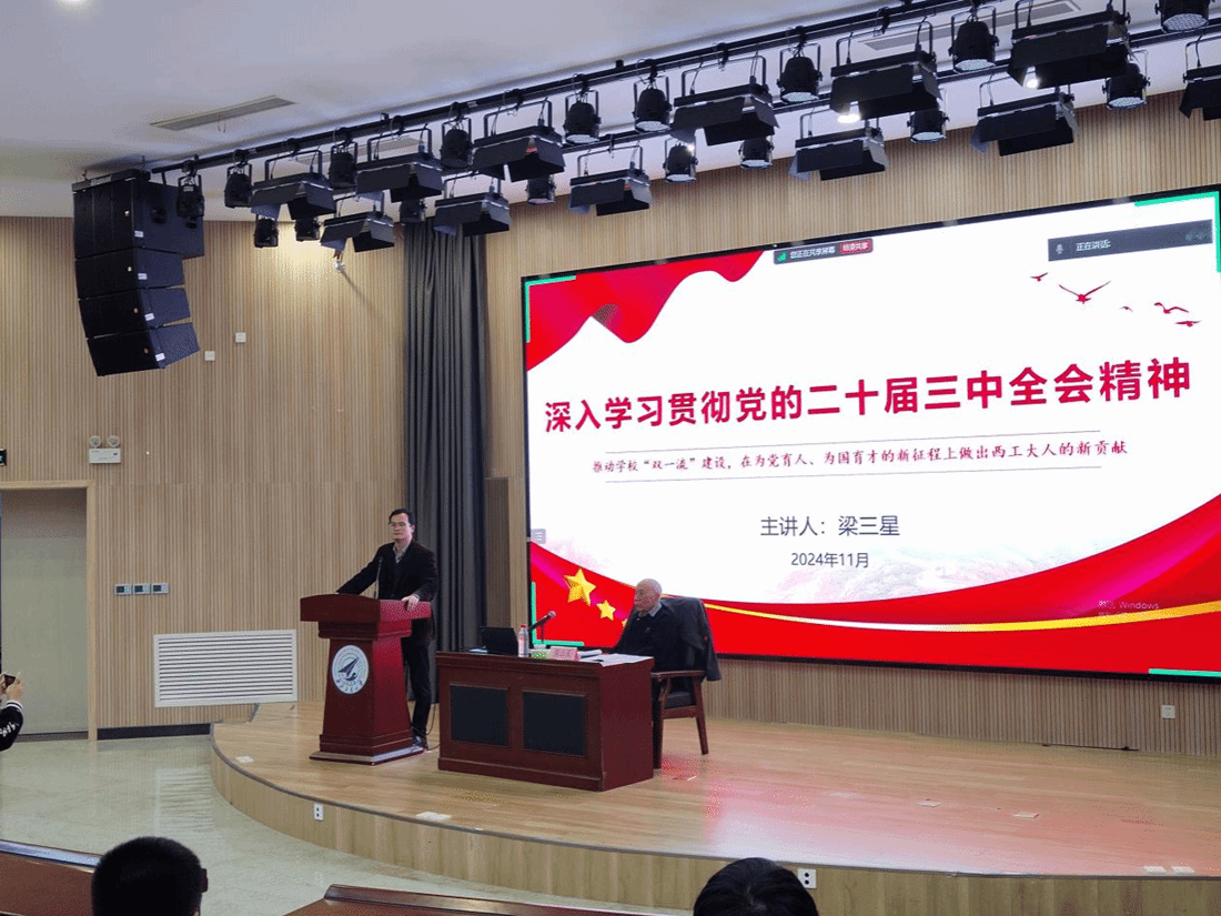 梁三星教授的专题党课由中共二十届三中全会公报主要内容、中共二十届三中全会《决定》的主要内容、贯彻全会精神推动西工大“双一流”建设三部分组成,内容丰富、话语生动,既有政策理论高度、又紧密结合学校发展实际,对于广大师生深入学习贯彻党的二十届三中全会精神具有重要指导意义。