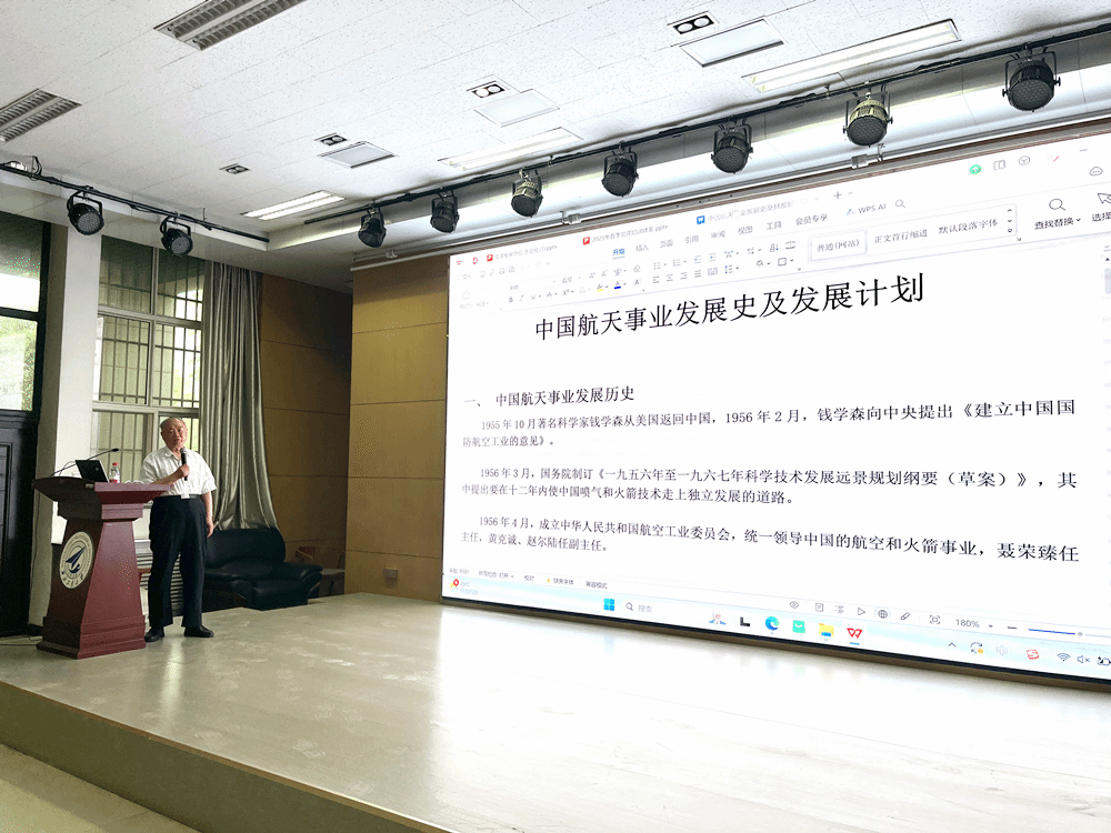 2025年5月6日,学院邀请到原西北工业大学研究生院常务副院长李言俊教授讲授《中国航天事业的发展规划及展望》。李言俊教授以中国航天事业发展史及发展计划出发,通过“东方红一号”到“天问探火”的跨越式发展,强调党的领导是科技创新的根本保证,并寄语青年学子以航天精神为指引,勇担时代使命。
