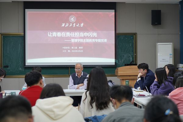 为扎实推动学习贯彻习近平新时代中国特色社会主义思想主题教育在青年学生中高质量开展,学院党委特邀退休老教师梁三星教授于5月6日下午在214报告厅,为学生骨干们讲授了题为“发扬五四精神,做习近平新时代中国特色社会主义思想的坚定信仰者和忠实实践者,为中国式现代化贡献青春和智慧,为西工大‘双一流’建设高质量发展贡献力量”的专题党课。学院各学学生党支部书记、班团干部以及学工干部参加本次党课,学院党委书记乔彩燕主持。