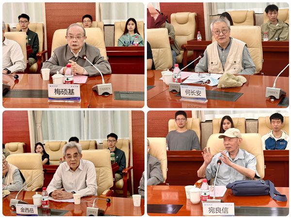 抚今追昔,聆听哈军工历史故事,体悟前辈先贤勇毅前行的精神力量。会上,曾在哈军工学习工作、后随迁来到西工大的学院老一辈教师代表梅硕基、金西岳、何长安、宛良信,分别深情回顾曾经的哈军工学习工作经历、分享哈军工宝贵精神财富。一段段不能遗忘的历史,一个个感人至深的故事,老先生们娓娓道来,带领师生代表重温了哈军工“报国、强军、忠诚、奉献”的壮阔历史岁月。与会人员仔细聆听、认真记录,不时对四位老先生的精彩讲述报以热烈的掌声,现场氛围热烈融洽。