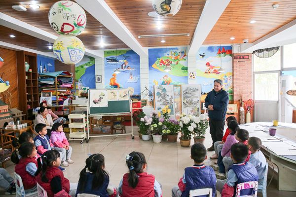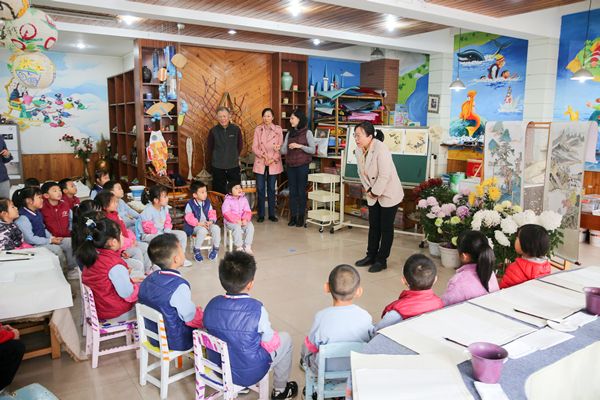 张琨代表校关工委、离退休工作处向幼儿园老师及小朋友们问好,并介绍了来自红枫叶花卉、书画协会以及老年大学的丁维汉、冷国伟、王诗舒、王香流四位老师。
