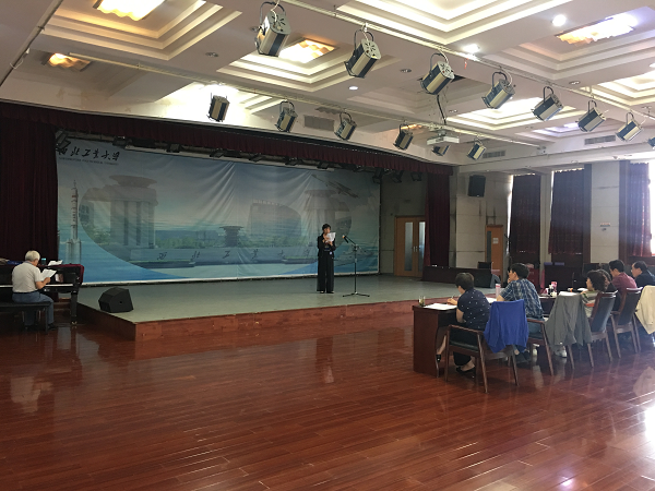 为不断提高红枫叶艺术团业务水平,5月24日上午,红枫叶合唱团在健翔楼五楼多功能厅举行2018年度业务考核,83位团员参加考核。离退休工作处副处长张华、艺术团主要负责人等作为评委。