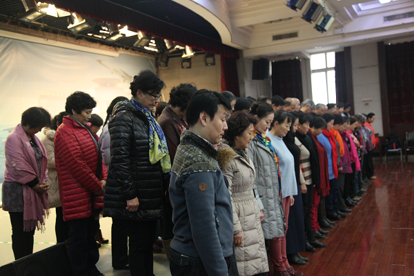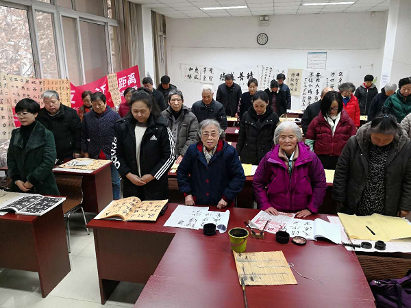 为牢记历史、勿忘国耻、凝聚力量、奋力拼搏,上午1001,南京大屠杀死难者国家公祭仪式正式开始,正在排练的红枫叶艺术团合唱队成员们起立默哀,刚准备上课的花鸟班的老年大学学员们也驻足默哀,为那30万南京大屠杀死难同胞默哀,深切表达对南京大屠杀遇难同胞的哀悼。